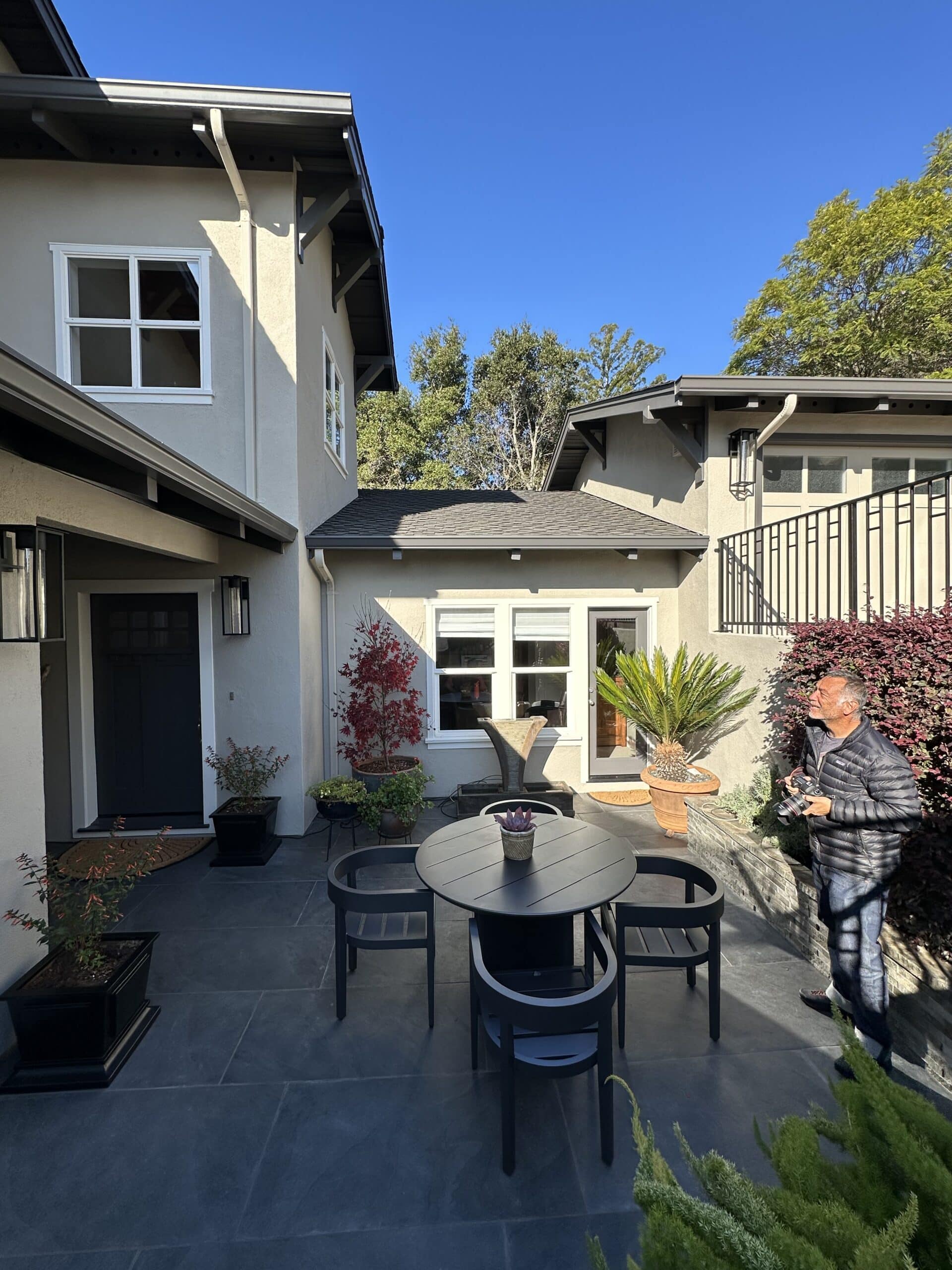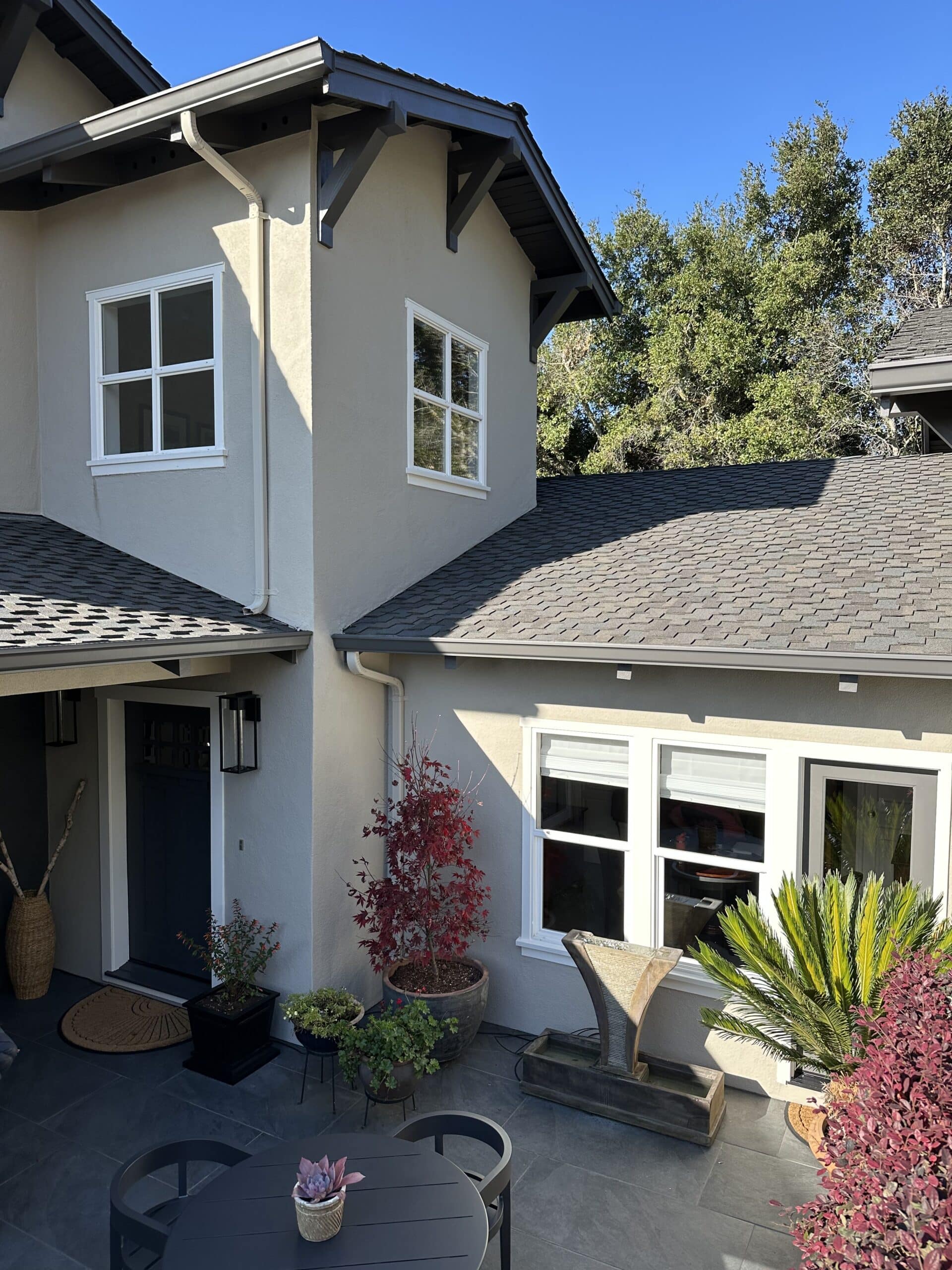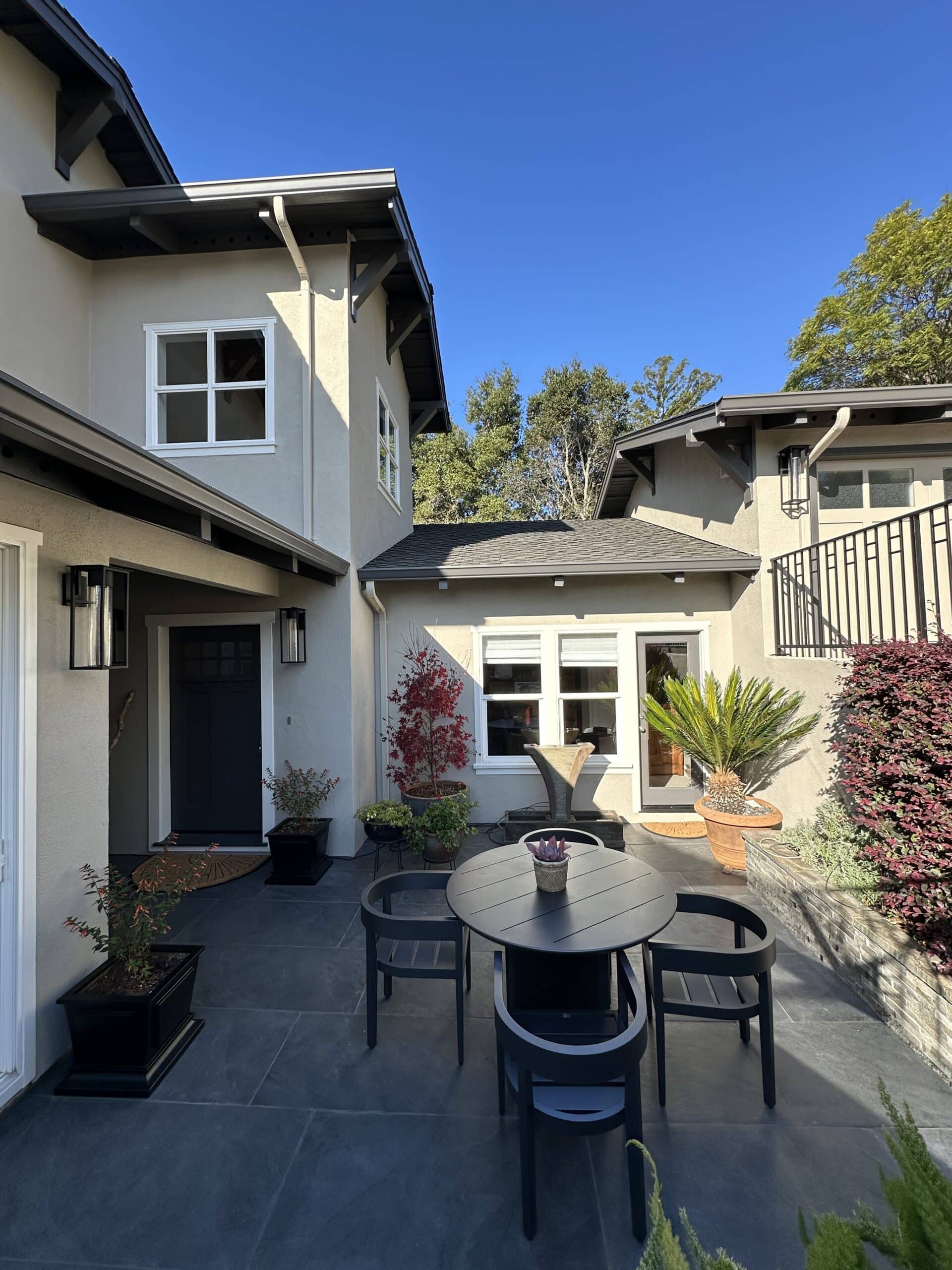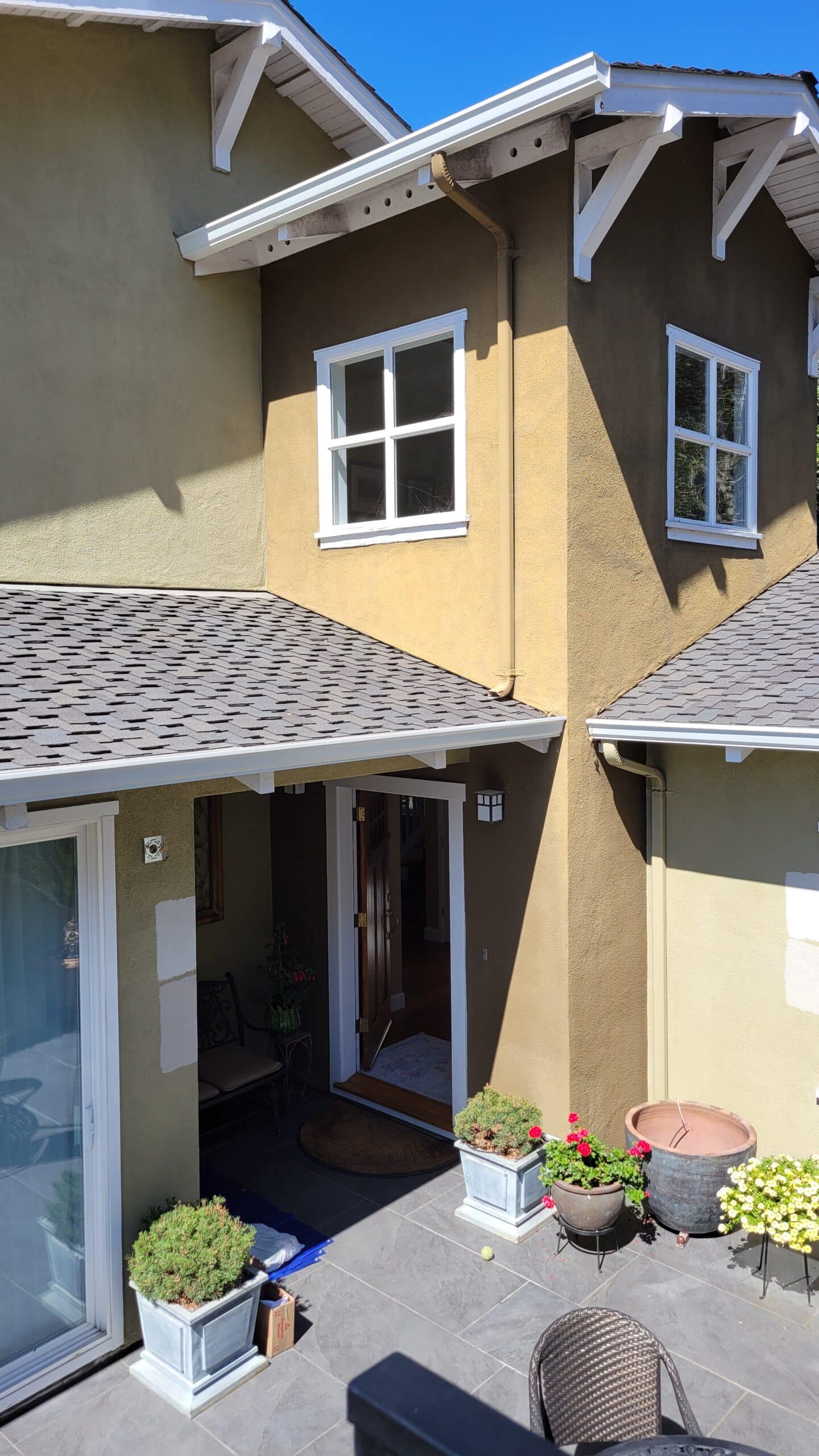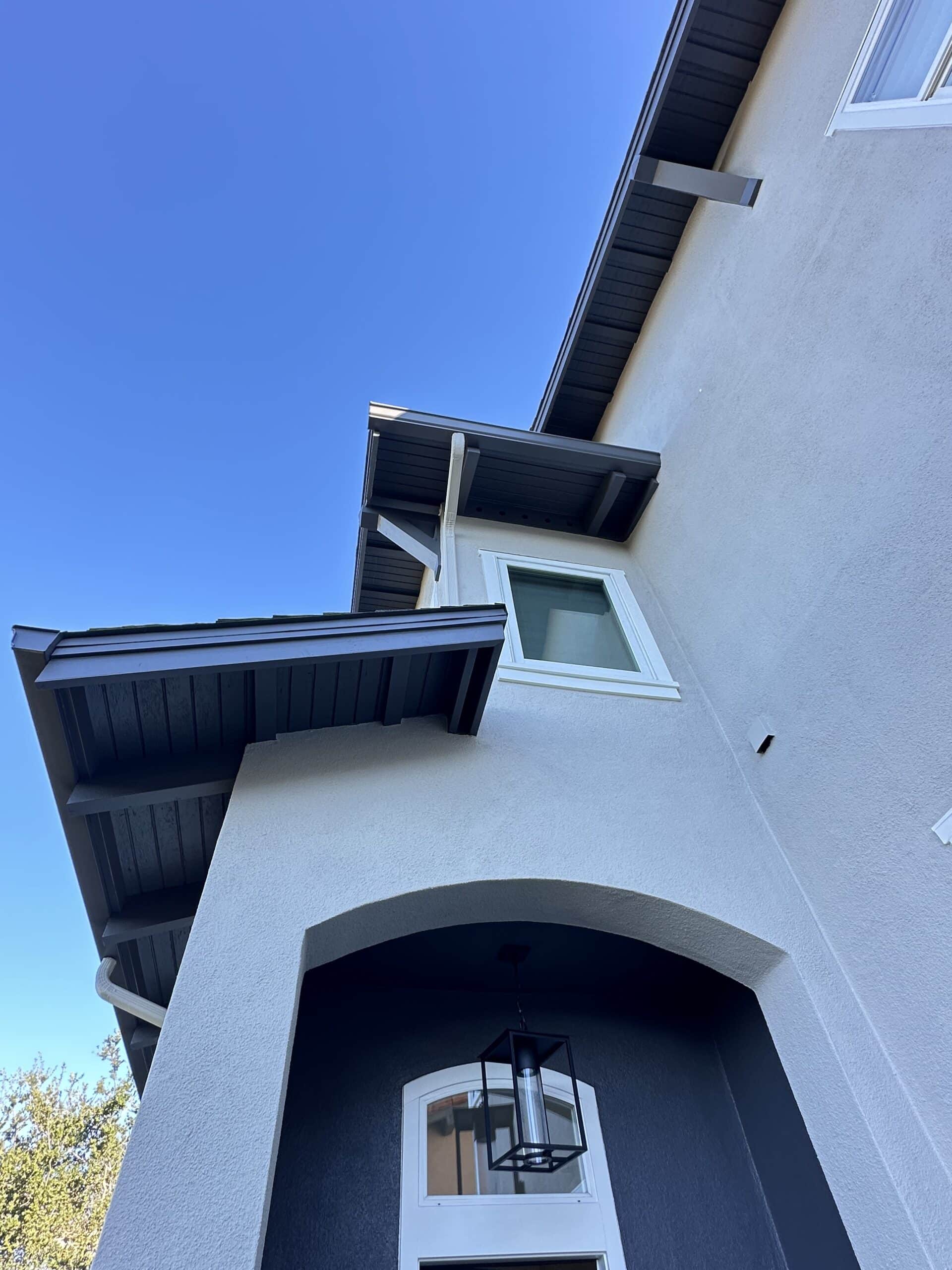 As the final coats cured and the scaffolding was removed, the transformation became immediately clear. Morning light now moves gently across the stucco, while afternoon sun brings warmth and dimension to the accent tones. In the evening, exterior lighting reveals crisp trim lines and rich shadow play, giving the home a presence that feels both grounded and elevated.