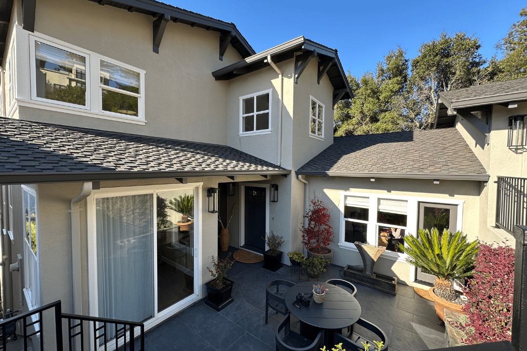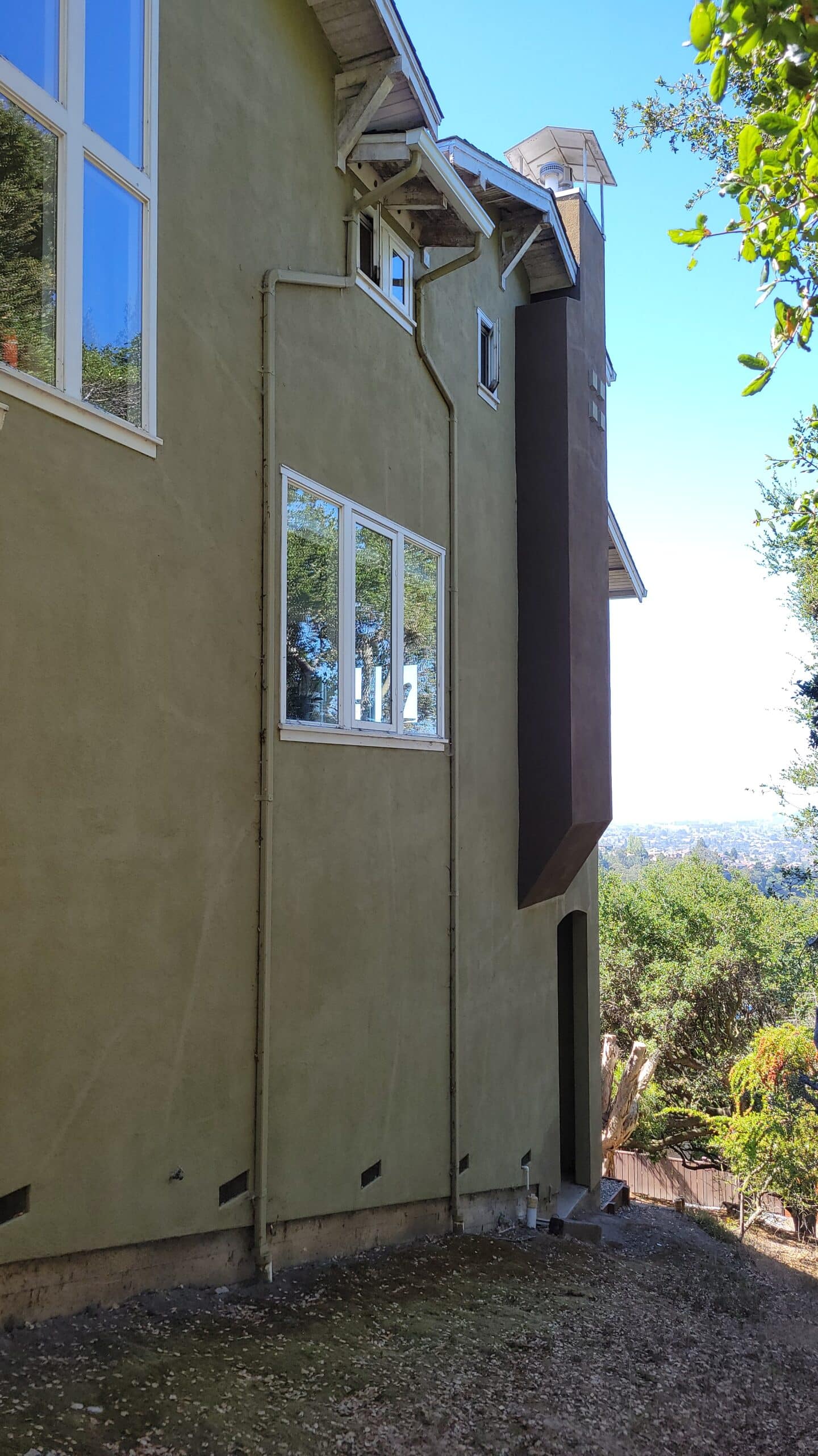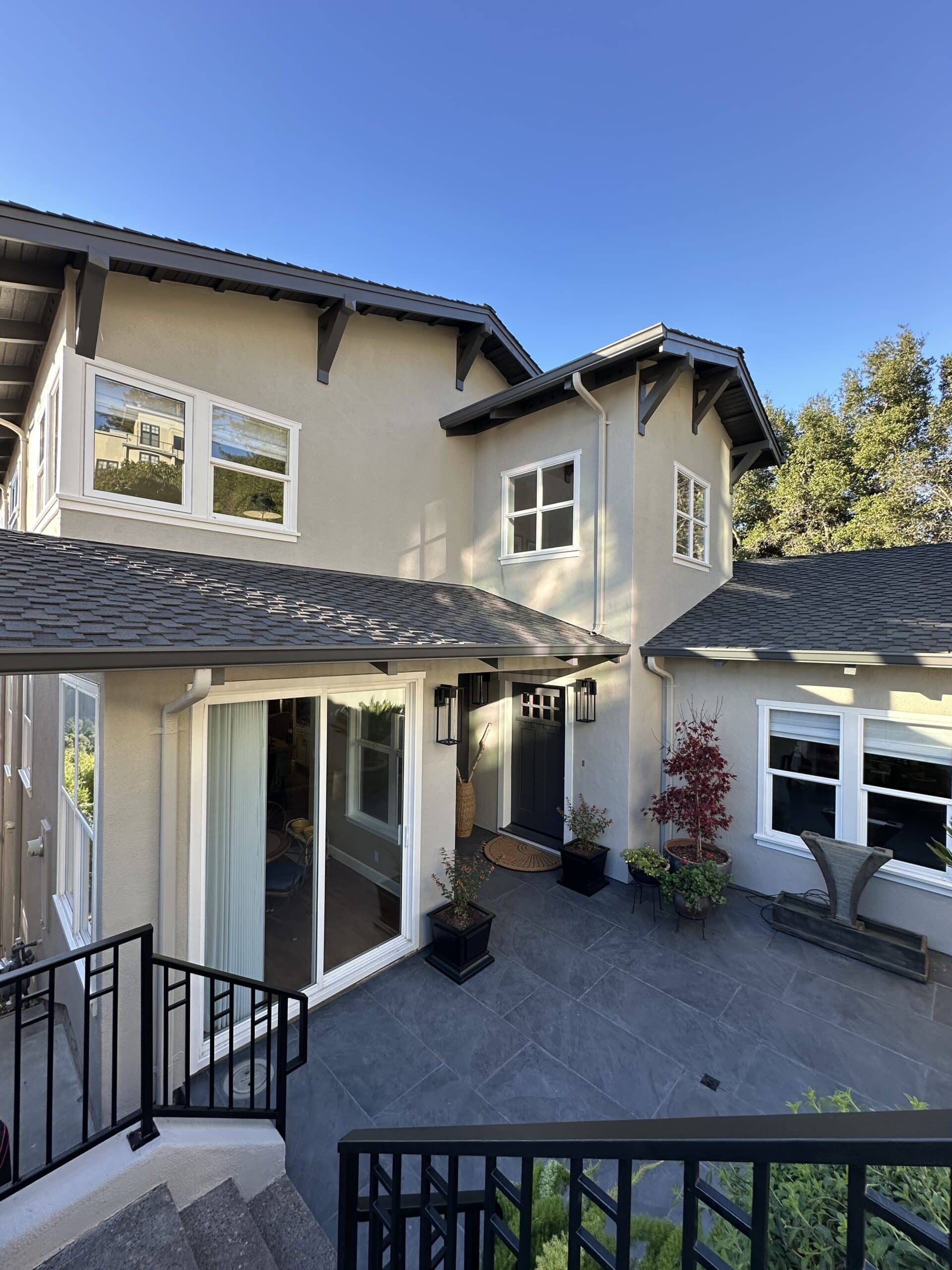 This exterior house painting Oakland CA project was a full, high‑detail exterior refresh for a striking three‑story home in Oakland’s Broadway Terrace and Upper Rockridge area. Years of sun exposure, environmental staining, and natural wear had dulled the home’s presence and softened the architectural definition. Because of the home’s height, mixed materials, and intricate detailing, the work required careful planning, professional scaffolding, and experienced craftsmanship.